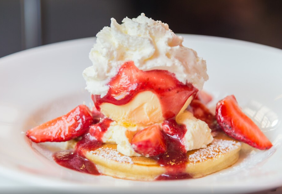 - 접시에 팬케이크를 쌓고 슬라이스한 딸기를 올린 뒤, 메이플 시럽이나 꿀을 뿌려 완성합니다.